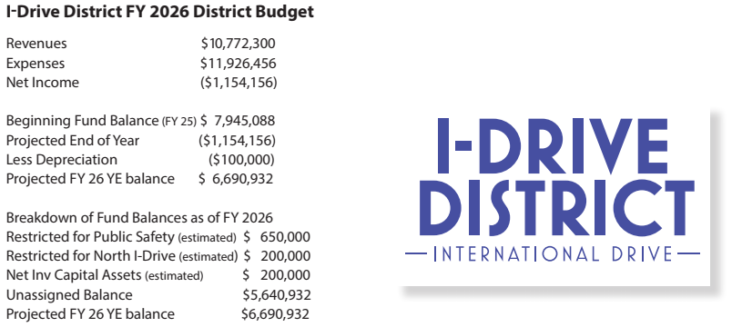 The International Drive Master Transit and Improvement District d/b/a International Drive Business Improvement District (the “District) is an independent special district created pursuant to Article VII of the Florida constitution and Section 125.01 (5) of the Florida Statutes through ordinances passed by Orange County, Florida and the City of Orlando, Florida. The District was created via Orange County Ordinance #92-37 on November 10, 1992 and is funded primarily by ad valorem revenues assessed through three Municipal Service Taxing Units (MSTU). The fiscal year of the District begins on October 1 and ends on September 30.